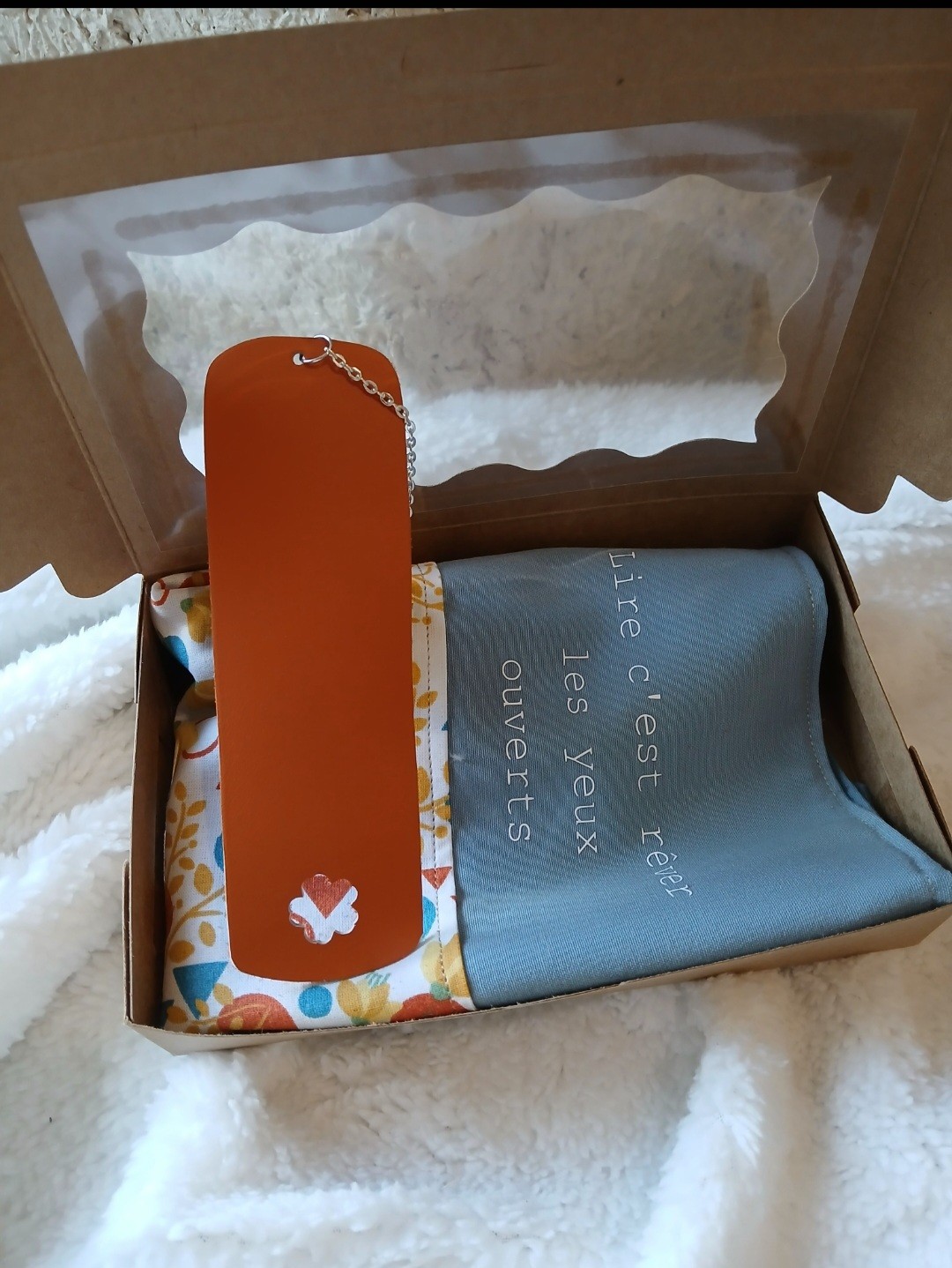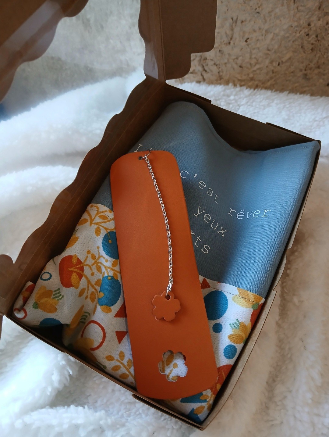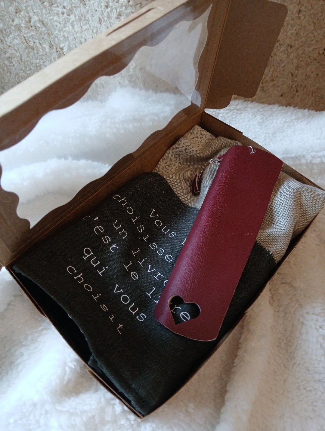 Ensemble pochette couvre livre et marque page en cuir!