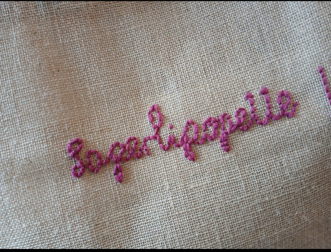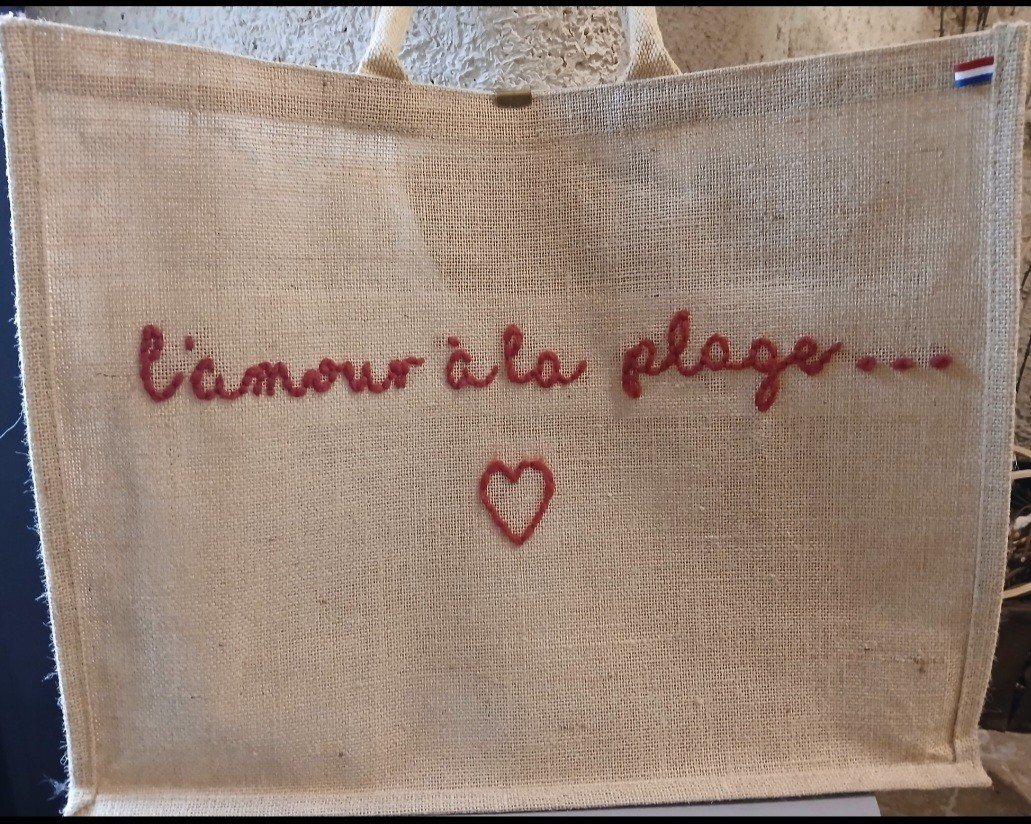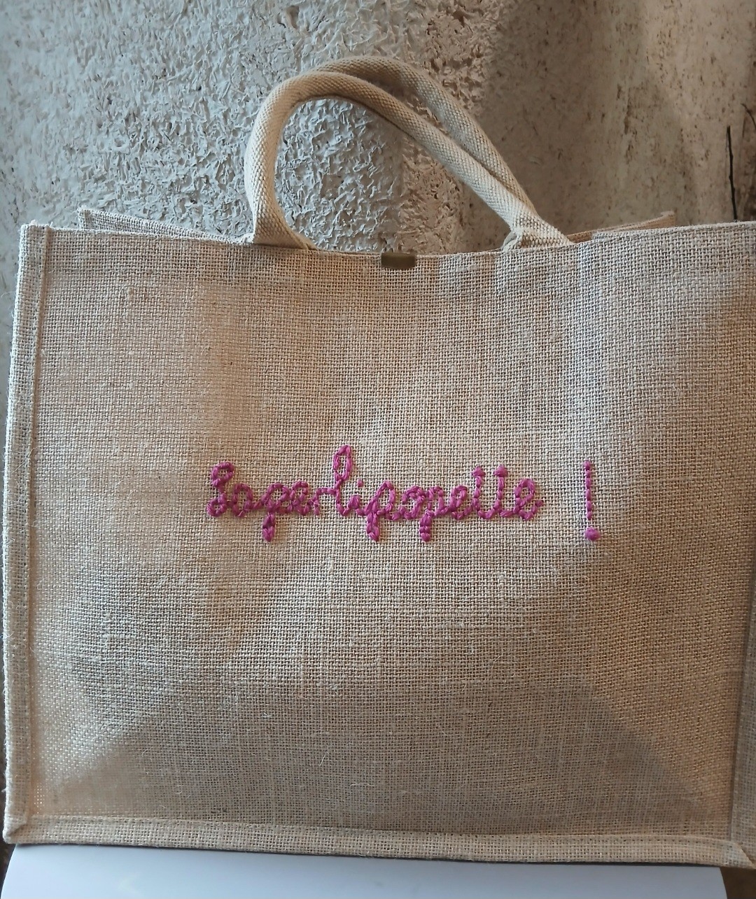 Cabas en jute brodé à la main au texte et couleur de votre choix