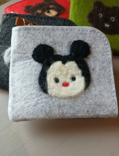 Porte monnaie en feutre brodé en laine feutrée à l'aiguille